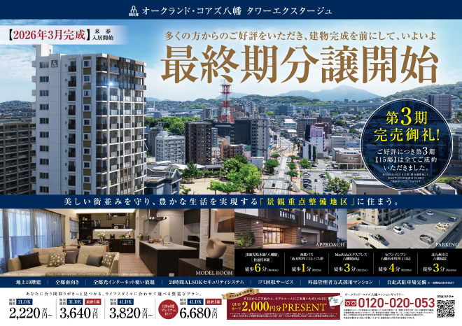 最終期分譲開始。おかげさまで第3期分譲(15戸)は完売いたしました。